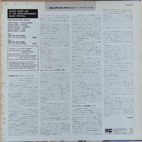 Archie Shepp – Life At The Donaueschingen Music Festival (Japan)