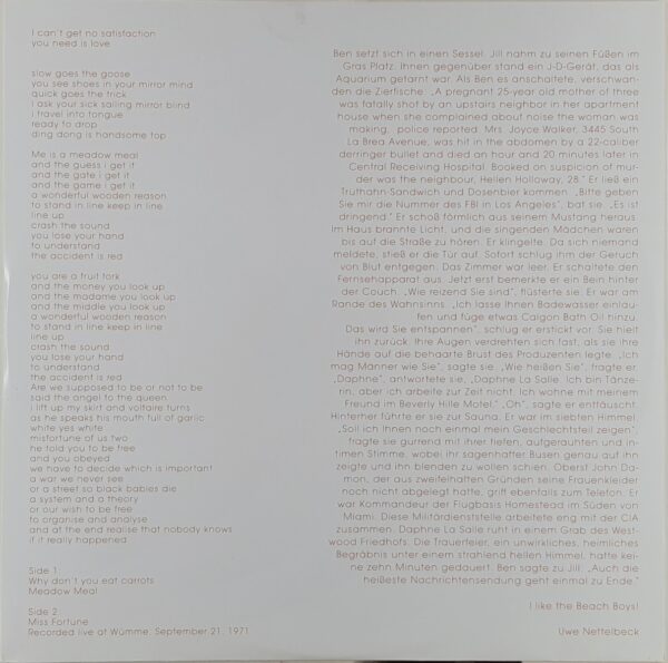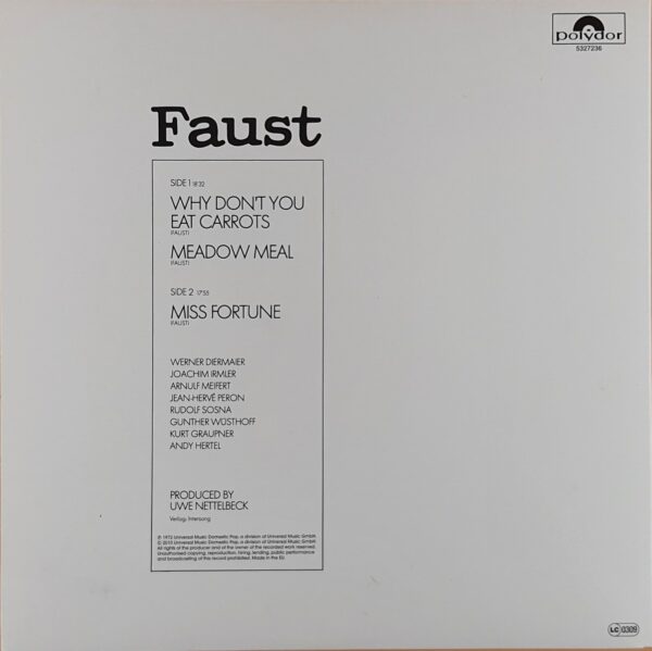 Faust nie jest tak naprawdę żadną straszną grupą. Jego ekspresja i sposób wyrazu różnią się od typowego prog rocka. Inne myślenie, które na sam rock progresywny nie wywarło wielkiego wpływu, lecz z kolei ogromny na post-punk. Poznanie tych nurtów pozwoliło zrozumieć, o co w muzyce Faust chodzi. To niejako antycypacja eksperymentalnych form post-punka takich jak Chrome, This Heat czy Throbbing Gristles. Faust ma więcej z tego, wywarł również obok Neu! wpływ na myślenie twórców w obrębie tego nurtu.