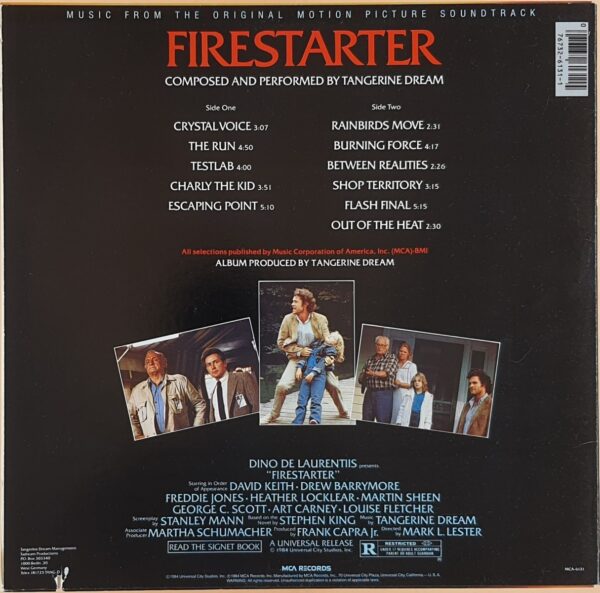 Lata 80. były bardzo pracowitym okresem dla grupy, która koncertowała na całym świecie (również w Polsce), nagrywała albumy studyjne i realizowała kolejne soundtracki. Muzyka do Podpalaczki Marka L. Lestera okazała się znacznie lepsza niż sam film na podstawiepowieści Stephena Kinga. Minimalistyczne kompozycje Tangerine Dream na tyle dobrze funkcjonują w oderwaniu od ekranu, że Firestarter sprawdza się jako samodzielna płyta do słuchania w domowym zaciszu. Muzyka do pewnego stopnia przypomina znakomitą ścieżkę dźwiękową Johna Carpentera i Ennio Morricone z filmu Coś; to podobne elektroniczne instrumentarium i zbliżony stopień trwogi zaklętej w chłodnych, migotliwych dźwiękach syntezatorów. Ale poza chwilami niepokoju (Flash Final, Escaping Point) są tu również momenty wytchnienia (Testlab, Charly The Kid).